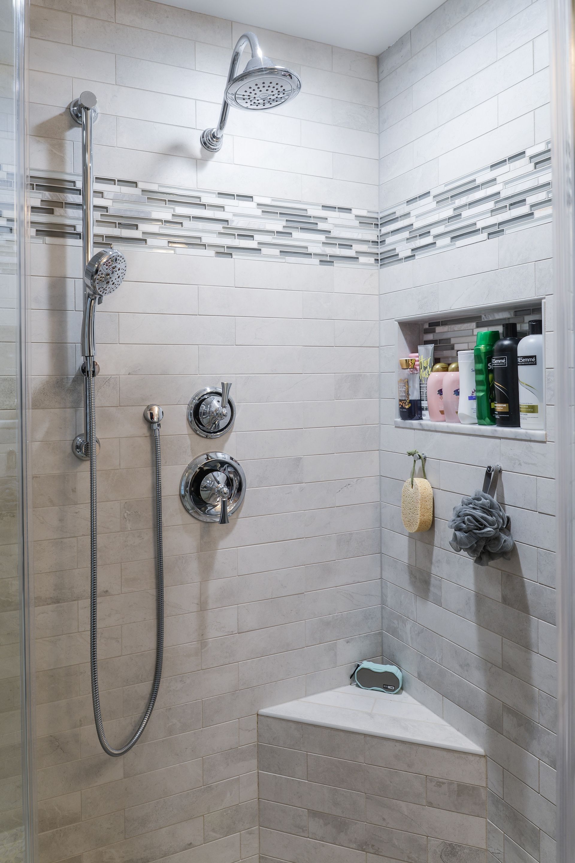 Well the bathroom is done and I just love it! In June I hired Nuss Construction in Marlton, New Jersey to do a complete bath construction. I had used Nuss on numerous jobs in my former home and was confident that they were the right ones for this job as well. They did not disappoint.
